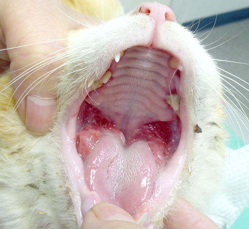猫カリシウイルスの感染によって起こります。